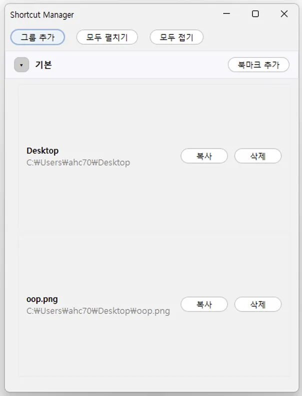 - lnk로 바로가기 만들어 유저가 파일/폴더 위치를 이동시켜도 문제없이 동작하도록 구현 (JNA)