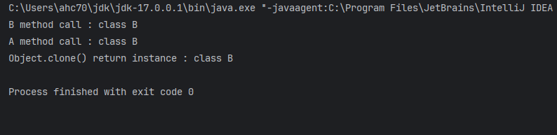 System.out.println("Object.clone() return instance : "+a.getClass());