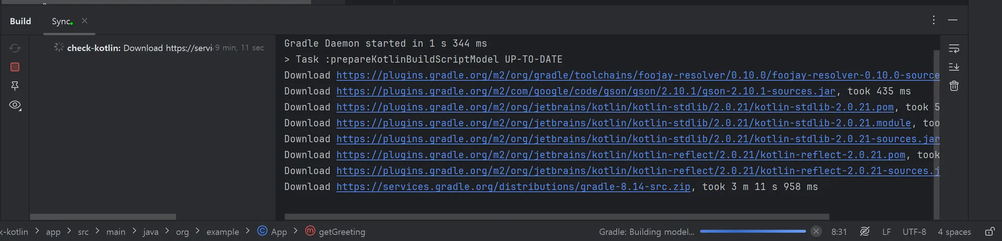 기존 환경인 Gradle Groovy의 경우 gradle 8.5버전으로 빌드한 것이 캐시되어있어 빠르게 빌드가 진행되었다.